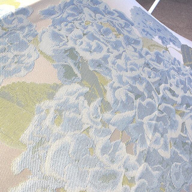 たて糸をキャンバスに、よこ糸を絵筆にみたて、季節の花々を織り描きました。