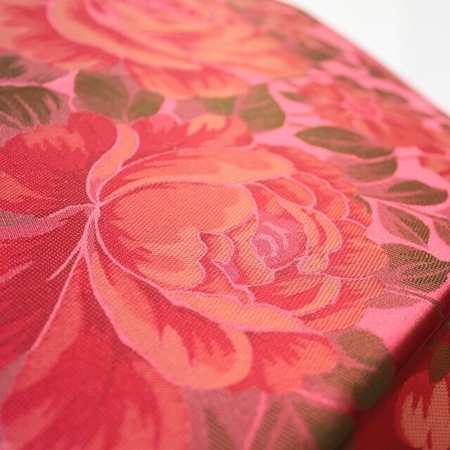 たて糸をキャンバスに、よこ糸を絵筆にみたて、季節の花々を織り描きました。