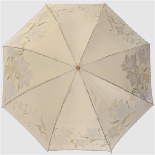槙田商店【晴雨兼用折りたたみ傘】”絵おり” 百合:ベージュ