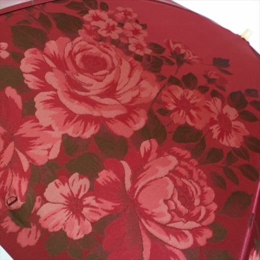 槙田商店【晴雨兼用折りたたみ傘】”絵おり” 大バラ:エンジ