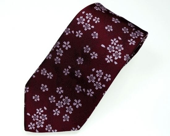 郡内織物「富士桜工房」シルクネクタイ 桜花 臙脂色