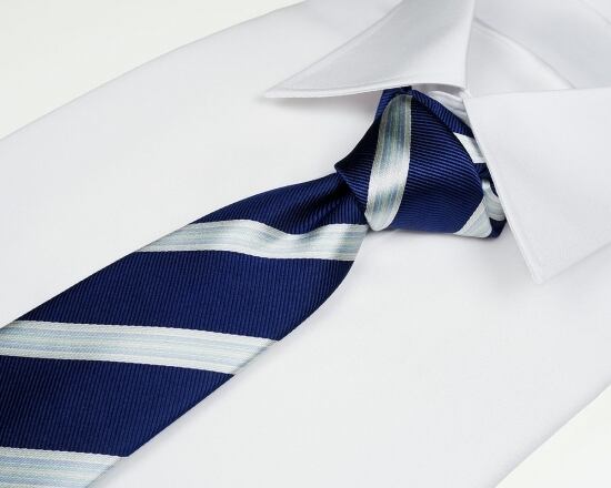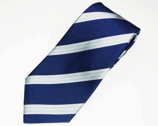 郡内織物「富士桜工房」シルクネクタイ ぼかし縞 白浜(桔梗紺)